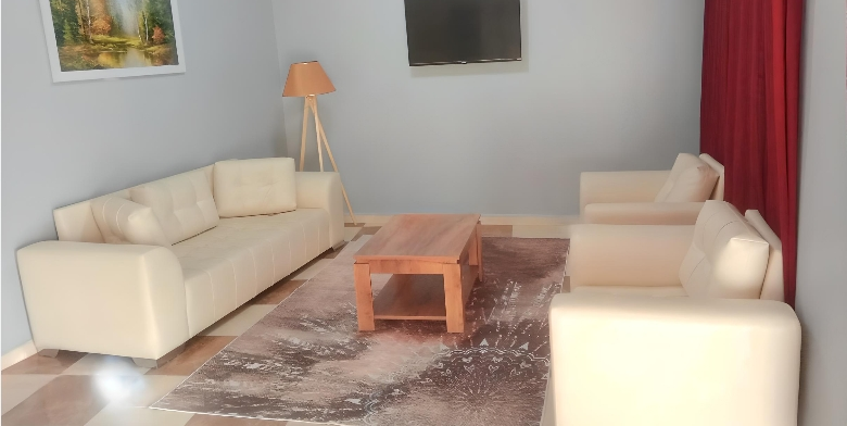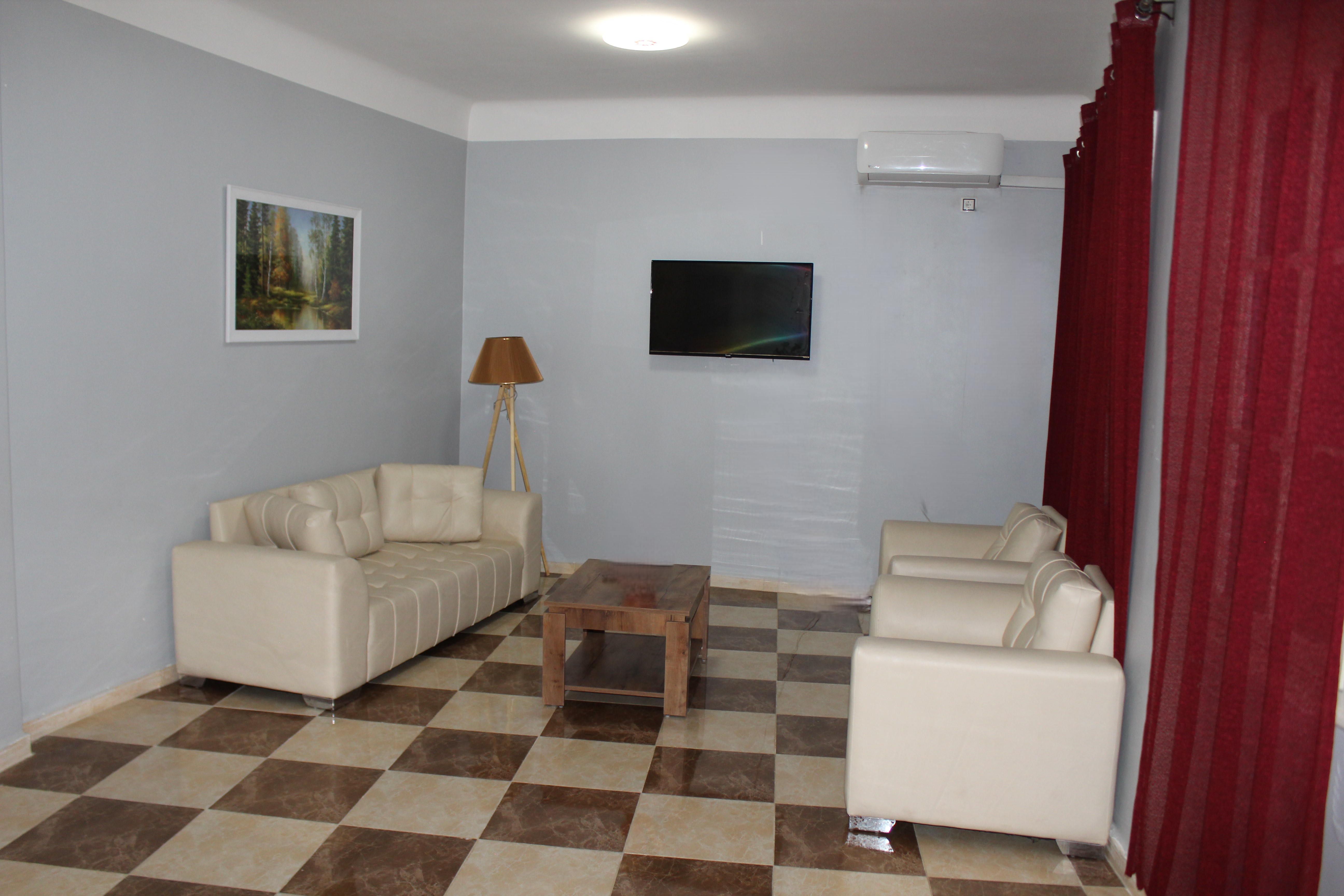 Un Salon Climatisé avec Feuteuil de 05 Place, Un Téléviseur écran Plat, Un Climatiseur
